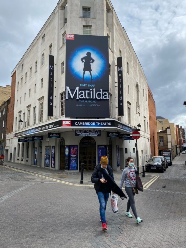 Улицы Seven Dials абсолютно пустые. Мюзикл Матильда закрыт, как и все остальные театры. Сегодня разговаривал с одной из мам в школе. Они сегодня собирали всех в театре и говорили, что гастроли отменяются, а в ближайшие полтора года зарплаты ни у кого не будет скорее всего.