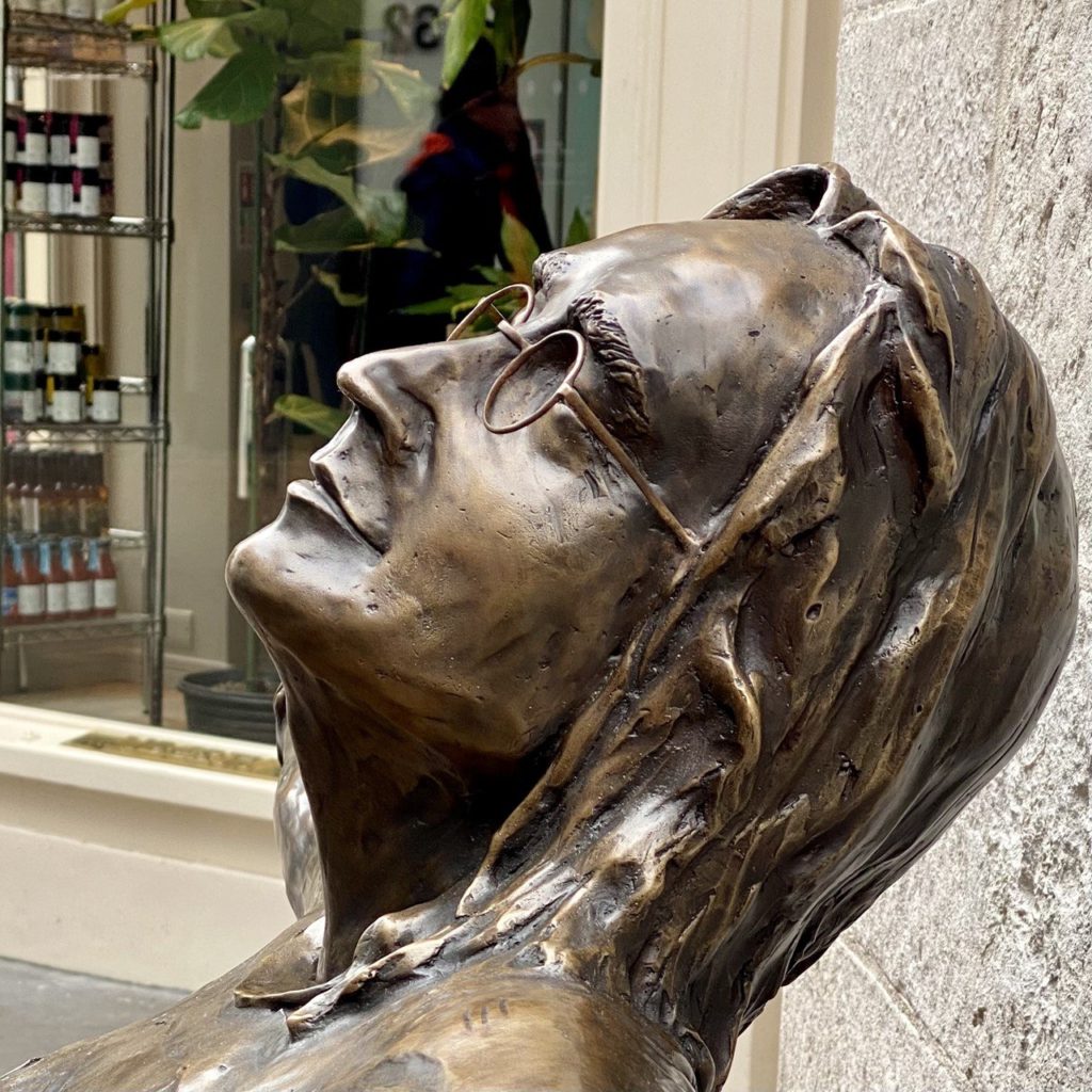 Еще через час я вернулся уже без группы, чтобы рассмотреть и убедиться. Журналисты из Мексики просили людей на камеру произнести отдельные строчки песни Imagine, а я пытался понять, простить и переварить данную композицию. Никаких табличек все еще не висит, поэтому меня терзали небольшие сомнения: «А Леннон ли это?» Может, Иисус, распятый на лавке и обреченный на селфи с инстаграммерами и тиктокерами?