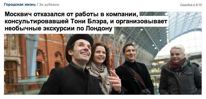 Статья о пеших турах «Вокруг Лондона за 40 шагов» в онлайнере